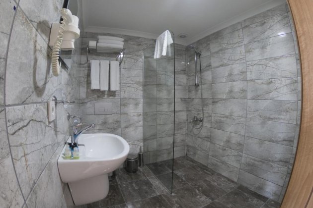 In the bathroom : Shower Free toiletries Toilet Bath or Shower Toilet paper